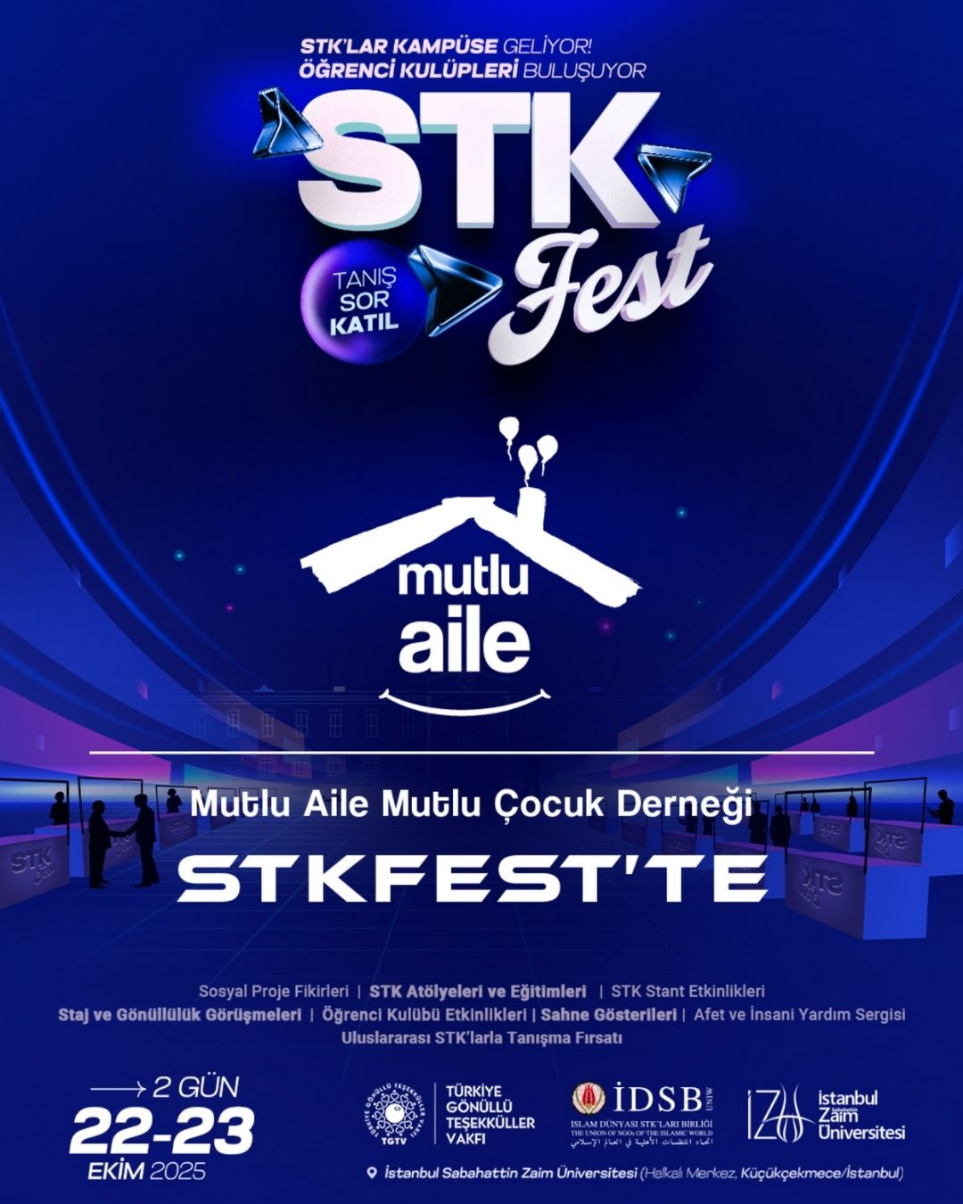 Sivil toplum kuruluşları ve öğrenci kulüplerini bir araya getiren STK Fest’te biz de yerimizi alıyoruz. 22-23 Ekim tarihlerinde İstanbul Sabahattin Zaim Üniversitesi’nde gerçekleşecek etkinlikte, derneğimizin yürüttüğü projeleri, gönüllülük çalışmalarını ve eğitim programlarını tanıtacağız. Sizleri de standımıza bekliyor, aile, çocuk ve toplum temelli çalışmalarımızı yakından tanımaya davet ediyoruz. 🌿 📍 Yer: İstanbul Sabahattin Zaim Üniversitesi 📅 […]