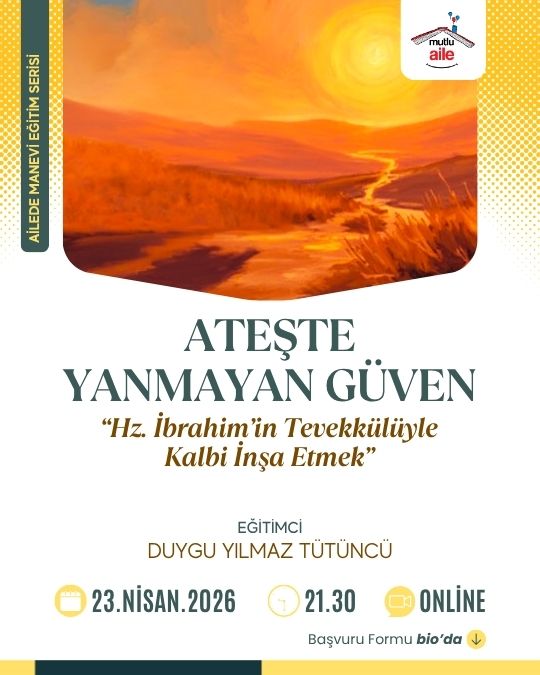 Online EğitimlerKAYIT OLMAK İÇİN TIKLAYINIZ! "Ateşte Yanmayan Güven" “Hz. İbrahim’in Tevekkülüyle Kalbi İnşa Etmek” “Güven” dediğimiz şey, sadece her şey yolundayken hissettiğimiz bir duygu değil; asıl her şey karışıkken sığındığımız bir […]